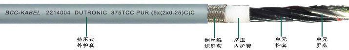 加強型耐油和耐冷卻液PUR護套對絞分總屏蔽高柔性數據電纜(三層護套)
